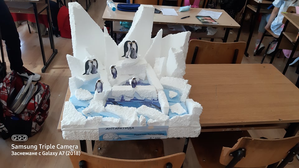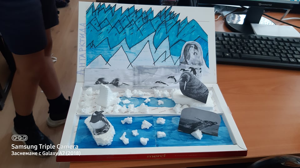 По изключително атрактивен начин петокласниците в нашето училище представиха тематиката от раздела Антарктида по география. Уникалните животински видове, които се срещат на този континент заедно с особеностите на климата му, провокираха