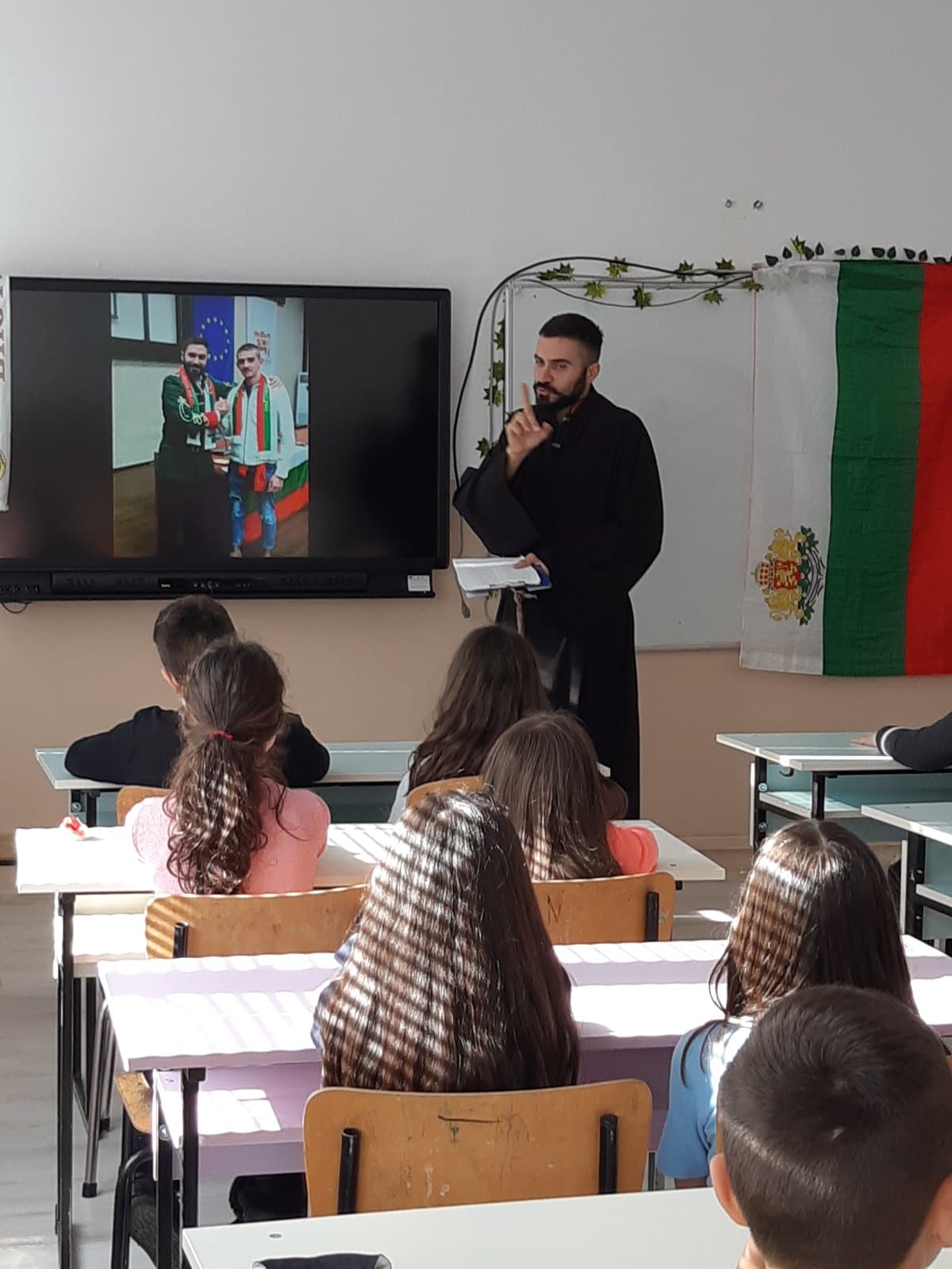 По повод 19 февруари и навършването на 148 години от обесването на Васил Левски, по покана на класните ръководители на 3. клас, Искрен Красимиров – основател на „НЕзабравимата БЪЛГАРИЯ“, представи пред третокласниците открит урок по родолюбие.