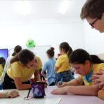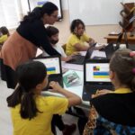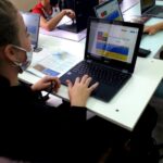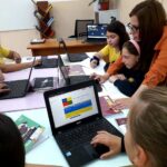 Парадигмата на учене може да се промени с помощта на модела 1:1 (едно към едно). В това ни убедиха учителят в начален етап Калина Даскалова и нейните ученици от 4 в клас, които реализираха урока по човекът и обществото „Ние сме граждани на европейска България“, работейки на персонални Chromebook устройства и използвайки свое копие на документ с всички задачи за часа, включващ връзки с разнообразни материали – ММТS. Попълниха анонимна анкета в Google, дискутираха какво прави Европейският съюз за своите граждани и за планираното осигуряване на безплатен достъп до интернет. Акцент в урока беше и приносът на нашата родина за опазване и обогатяване на културното наследство на голямото ни европейско семейство. Учениците изброиха разнообразни примери за материални и духовни културни ценности и гледаха презентация за българските занаяти, изготвена от групата за занимания по интереси “4web”.