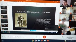 “Историческата част” на урока започна с история на книгоиздаването в България, особености на предосвобожденска и следосвобожденска действителност в българските земи, общите идеали, възгледи на историческата епоха и връзката литература – история, образование – просвета – култура.Преподавателят по история продължи с темата за книгоиздаването в Пловдив и виртуална разходка в къща – музей “Христо Г.Данов”. Учениците разгледаха възрожденска класна стая, печатарска машина от XIX век, стенни географски карти и се запознаха със значението на Данов в историята на възрожденски Пловдив.