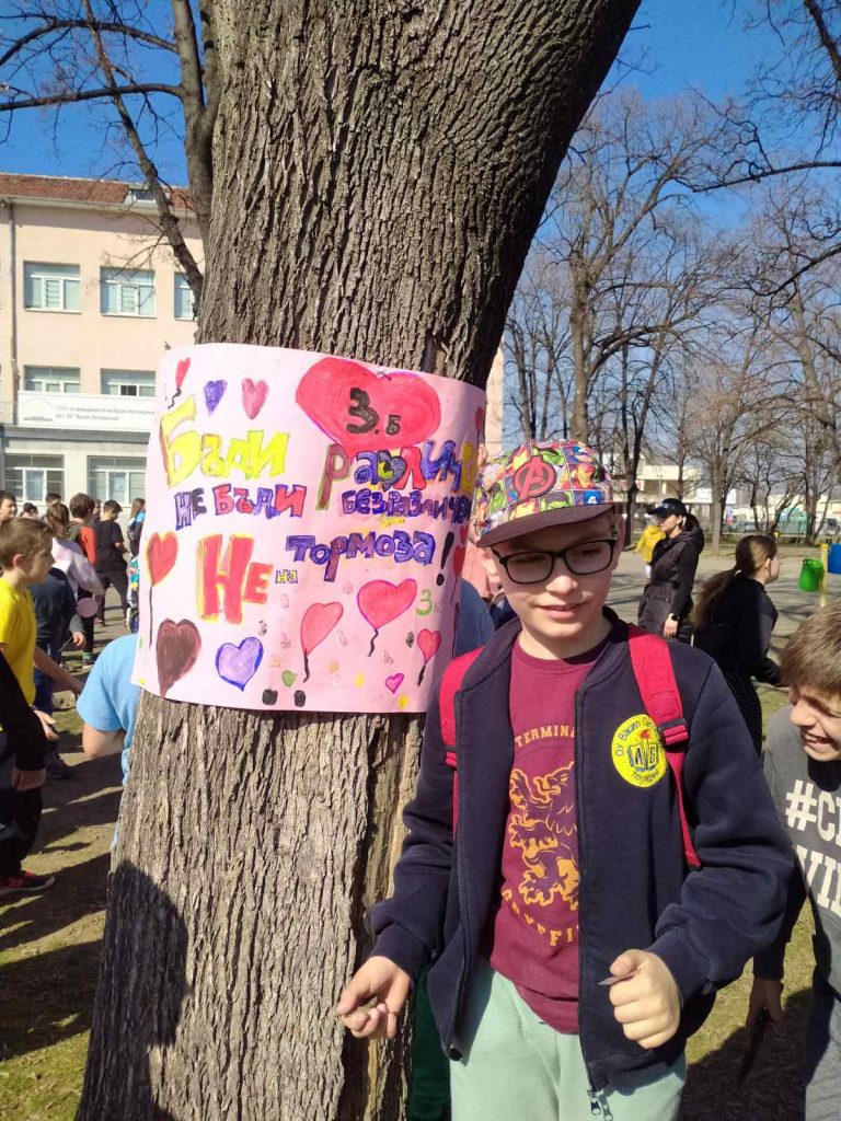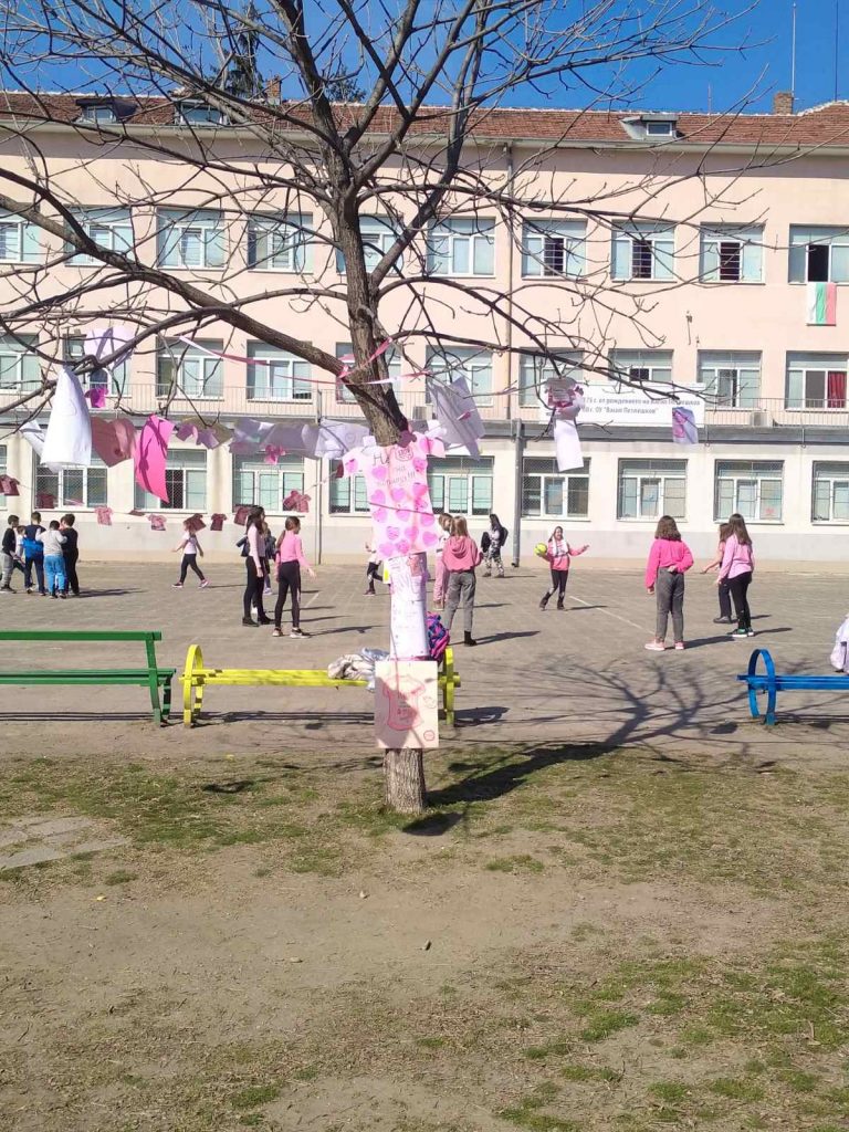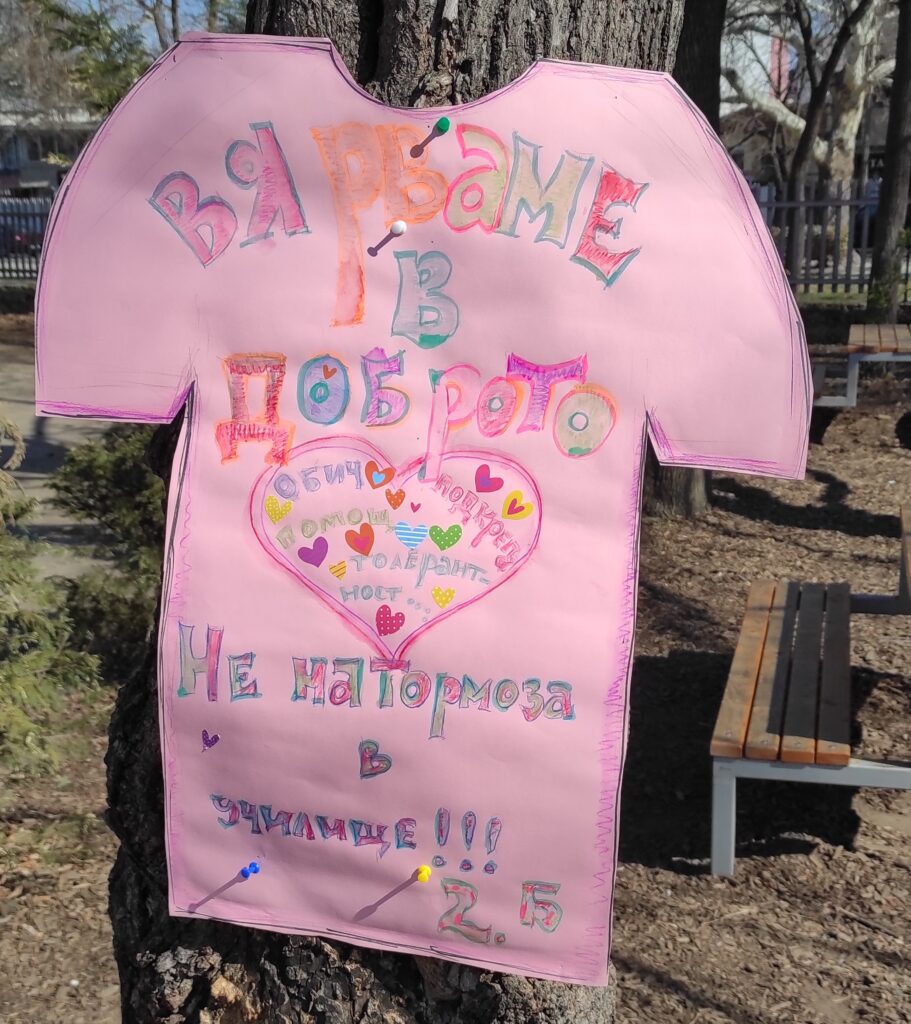 Едно от дърветата в двора на училището бе избрано за посланик на доброто. По него учениците закачиха своите послания и рисунки в знак на подкрепа, разбиране и съпричастност.