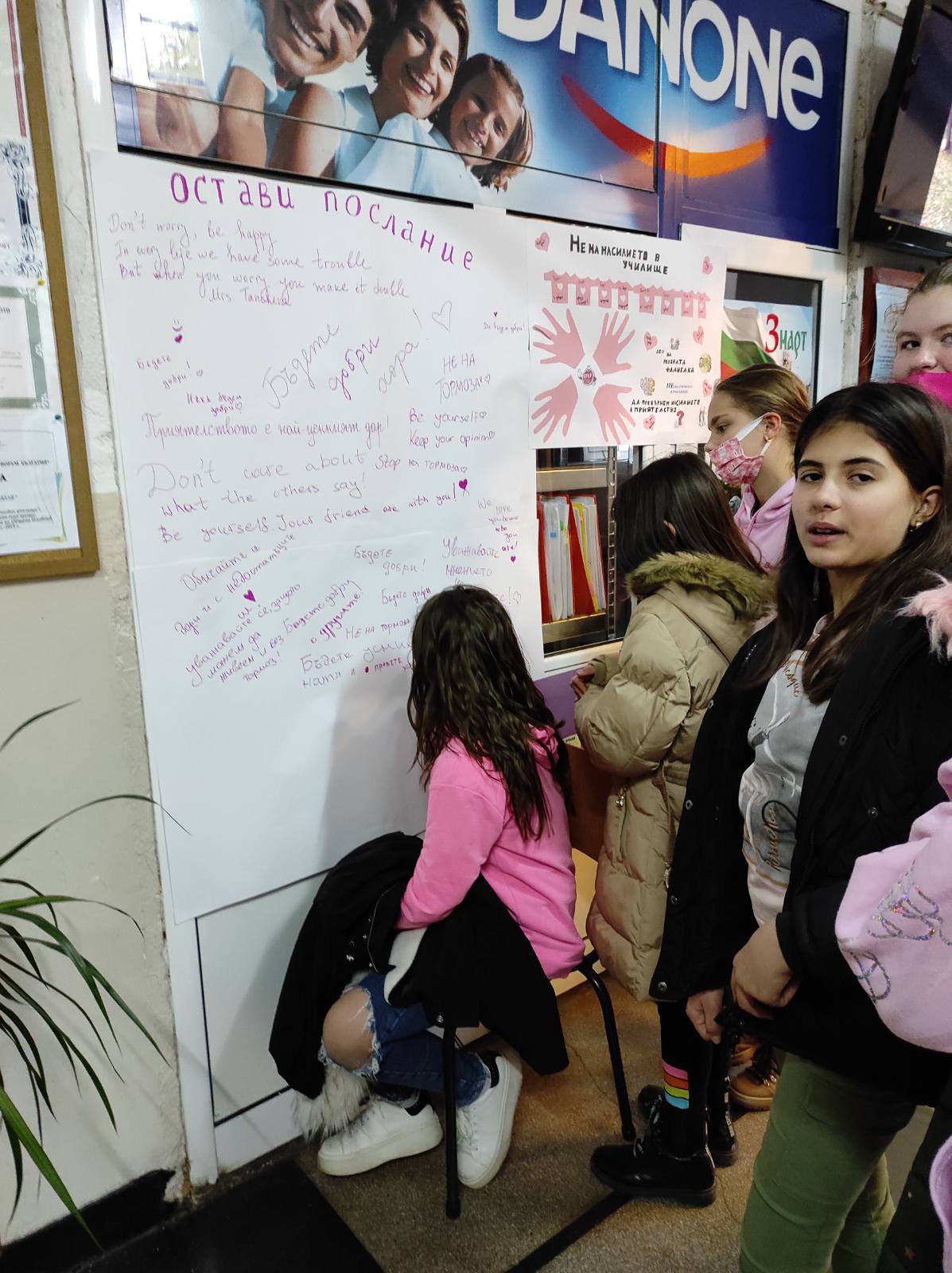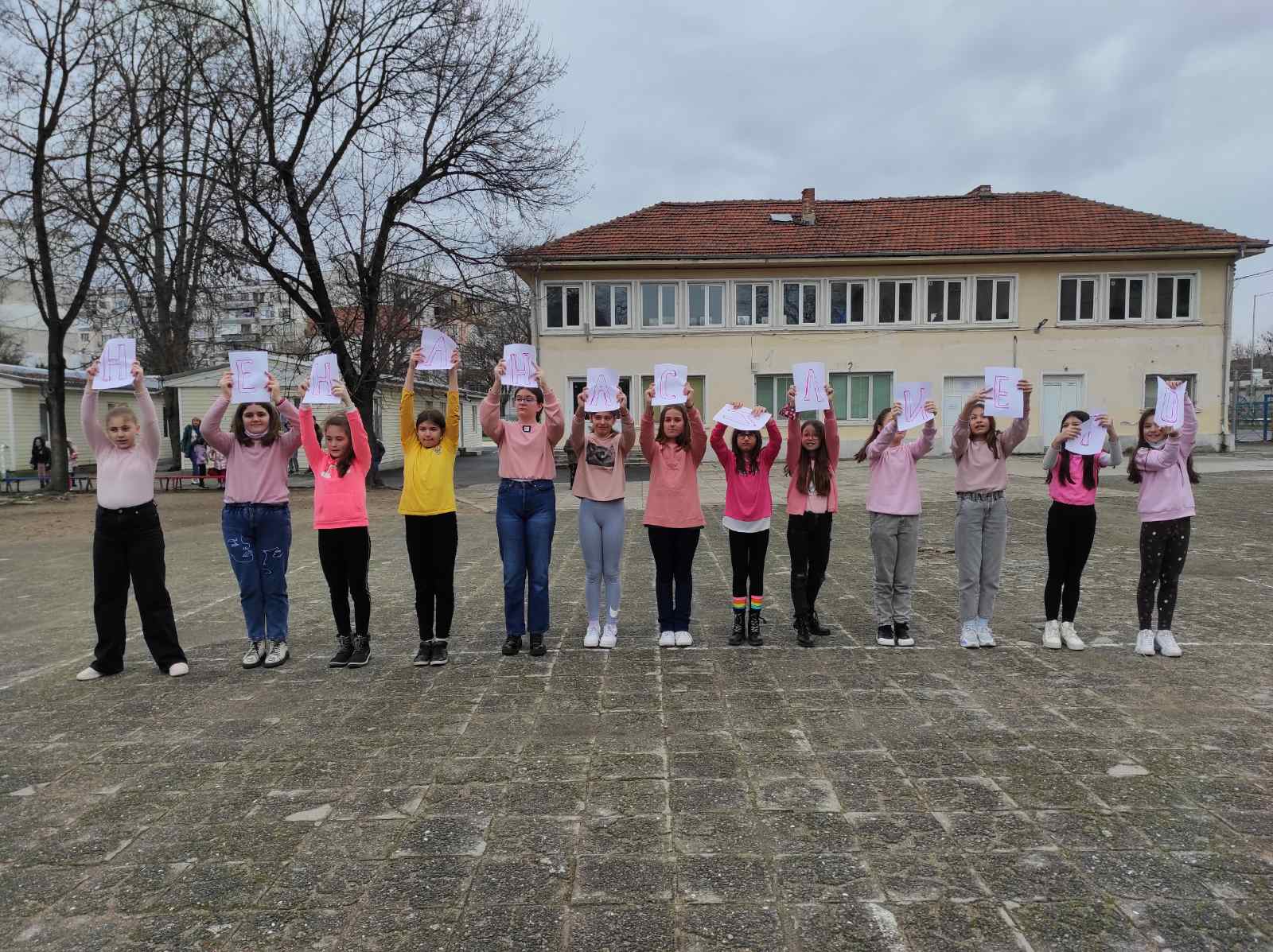 Вчера голяма част от учениците, които се обучават от ОУ “Васил Петлешков” участваха във “Флашмоб”, с който отбелязаха “Ден на розовата фланелка”. В цялото училище имаше изложени проекти и послания, с които децата заявиха своята позиция срещу насилието. Над 50 упеници участваха в хореография, която бе заснета с дрон в двора на ОУ”Васил Петлешков”. С телата си, децата изписана “СТОП”, с което показаха съпричастност към каузата.