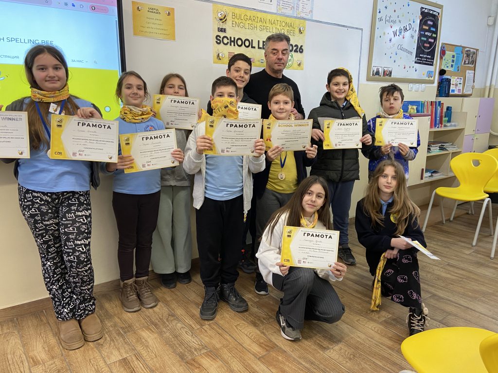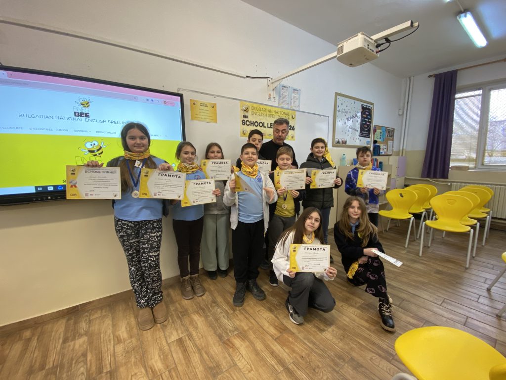 В периода 9–15 февруари 2026 г. над 7000 ученици от цялата страна участват в училищните кръгове на Spelling Bee (за ученици до 7. клас) и Spelling Bee JUNIOR (за ученици до 4. клас). Състезанието не само подобрява знанията по английски език, но и развива качества като увереност, концентрация и умения за изява пред публика.
