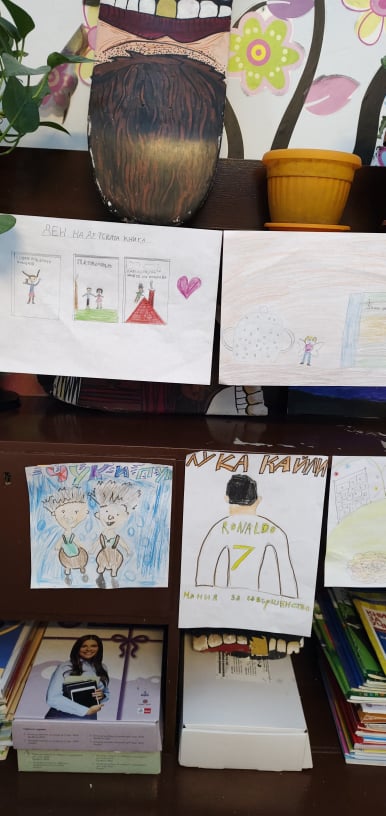 Учениците от 2., 3., 4. и 5. клас посветиха специална изложба от илюстрации на тема „Моята любима книга“ на Международния ден на детската книга.