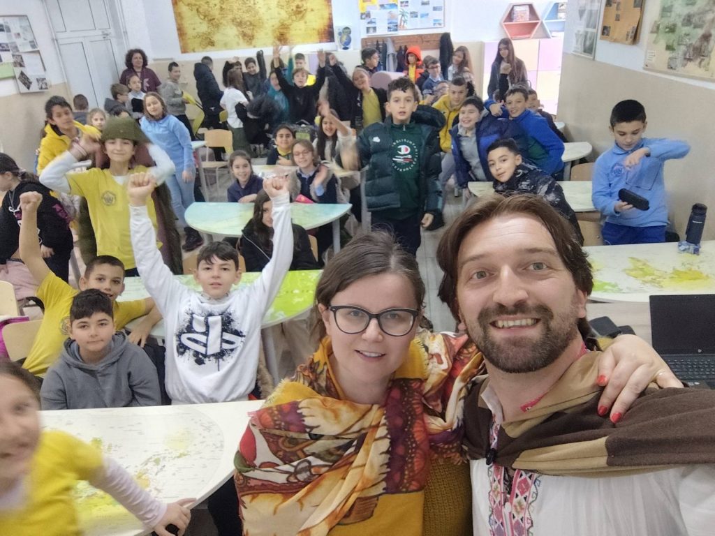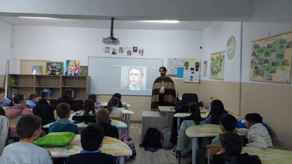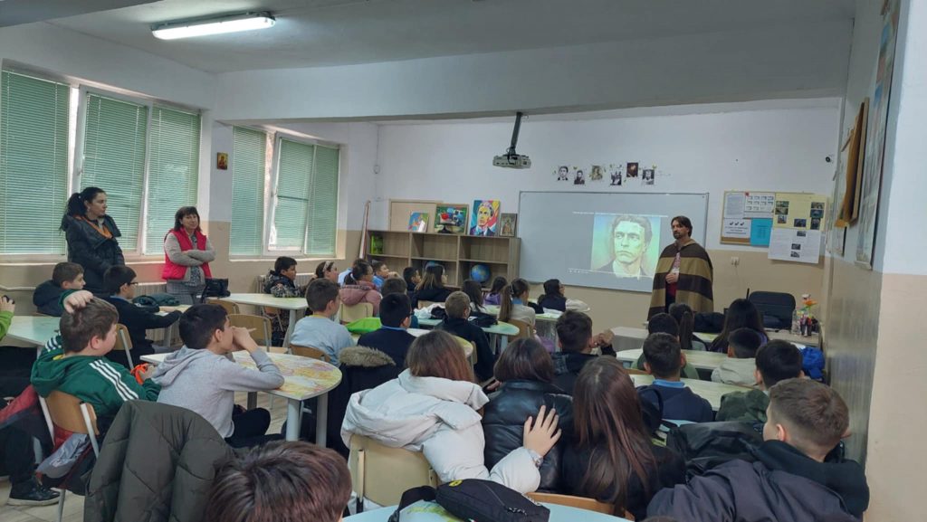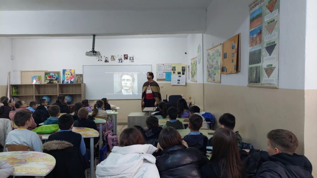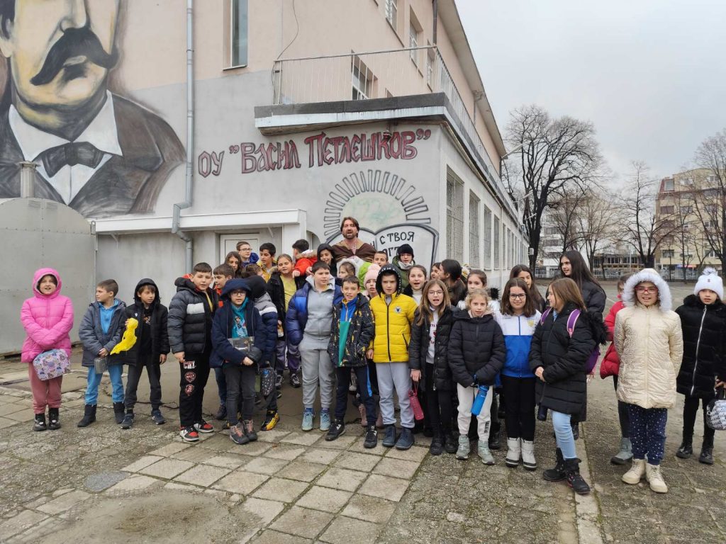 Учениците от ОУ „Васил Петлешков“ имаха много емоционална среща с актьора Димитър Кунчев от Копривщица, който влезе в образа на Левски по повод 152 години от смъртта на Апостола на свободата.