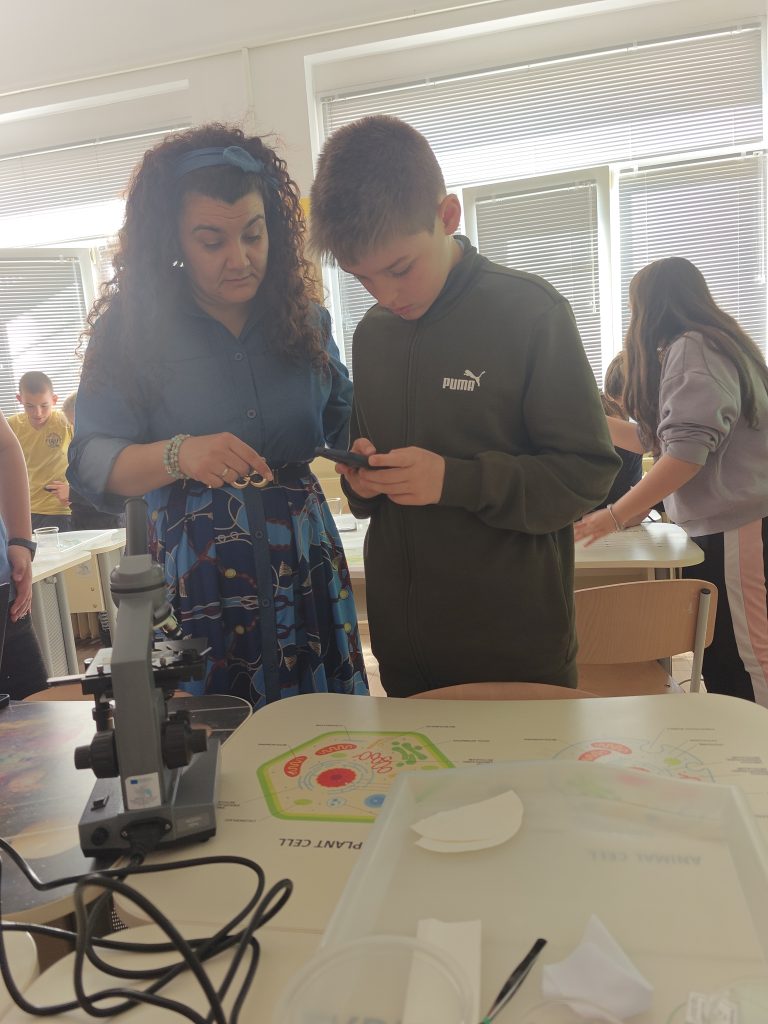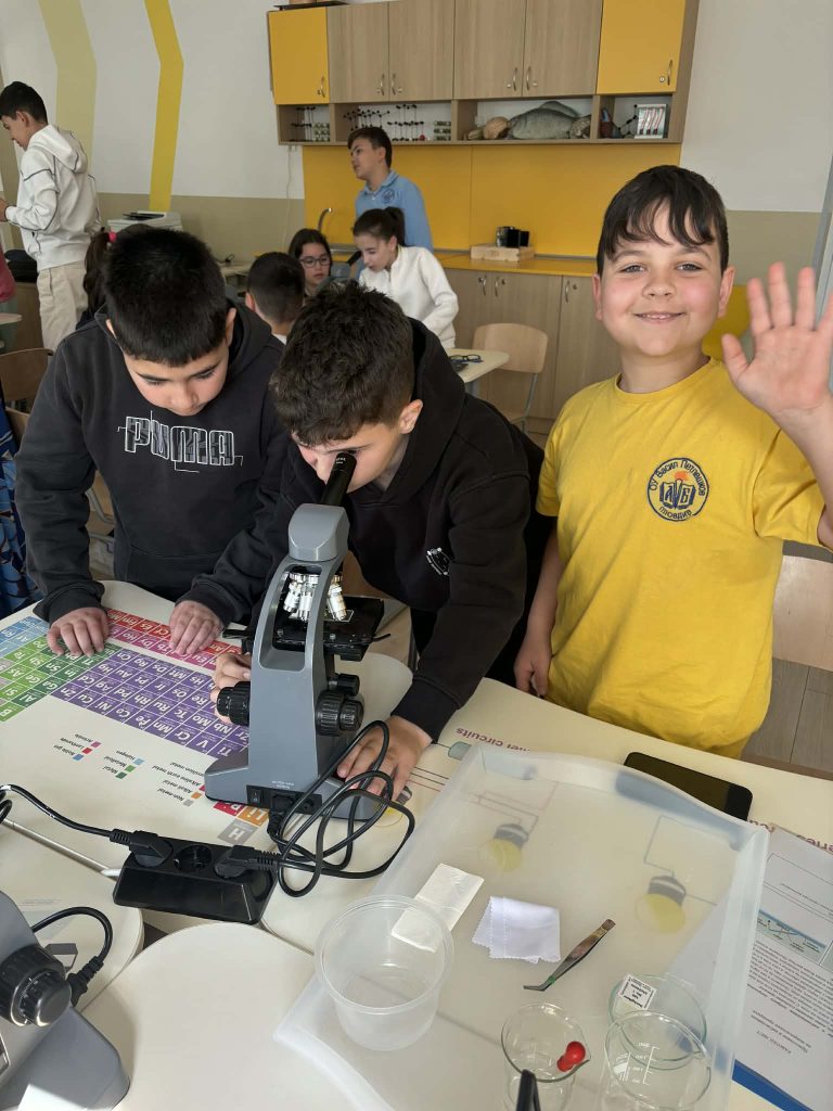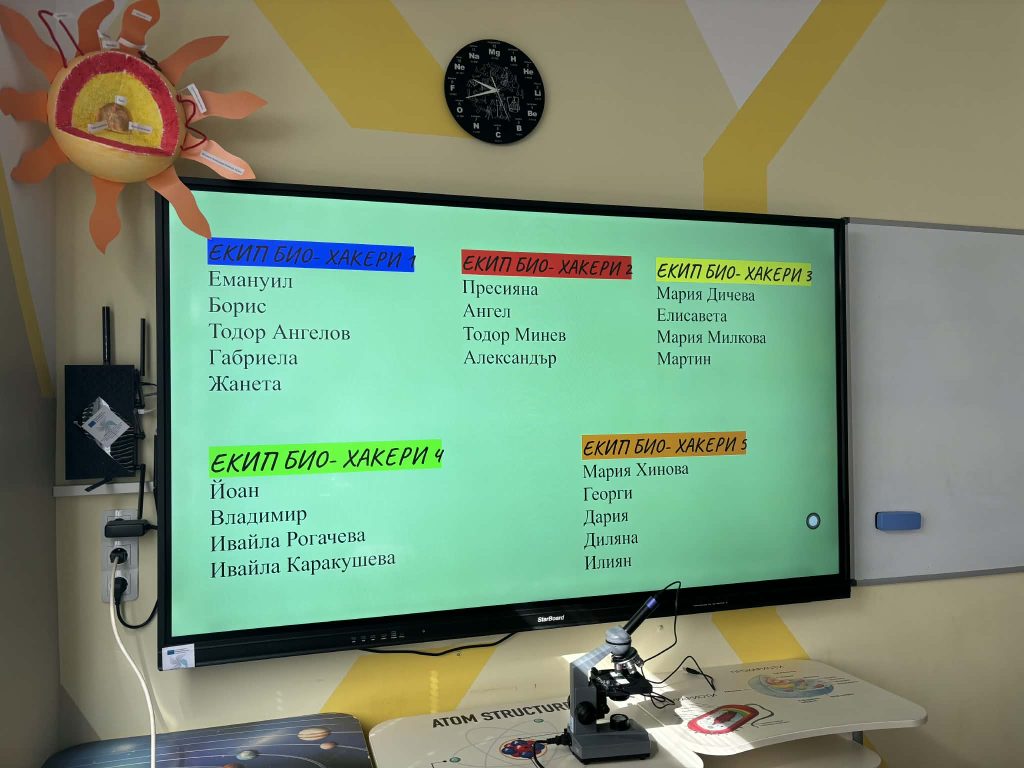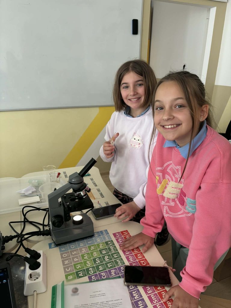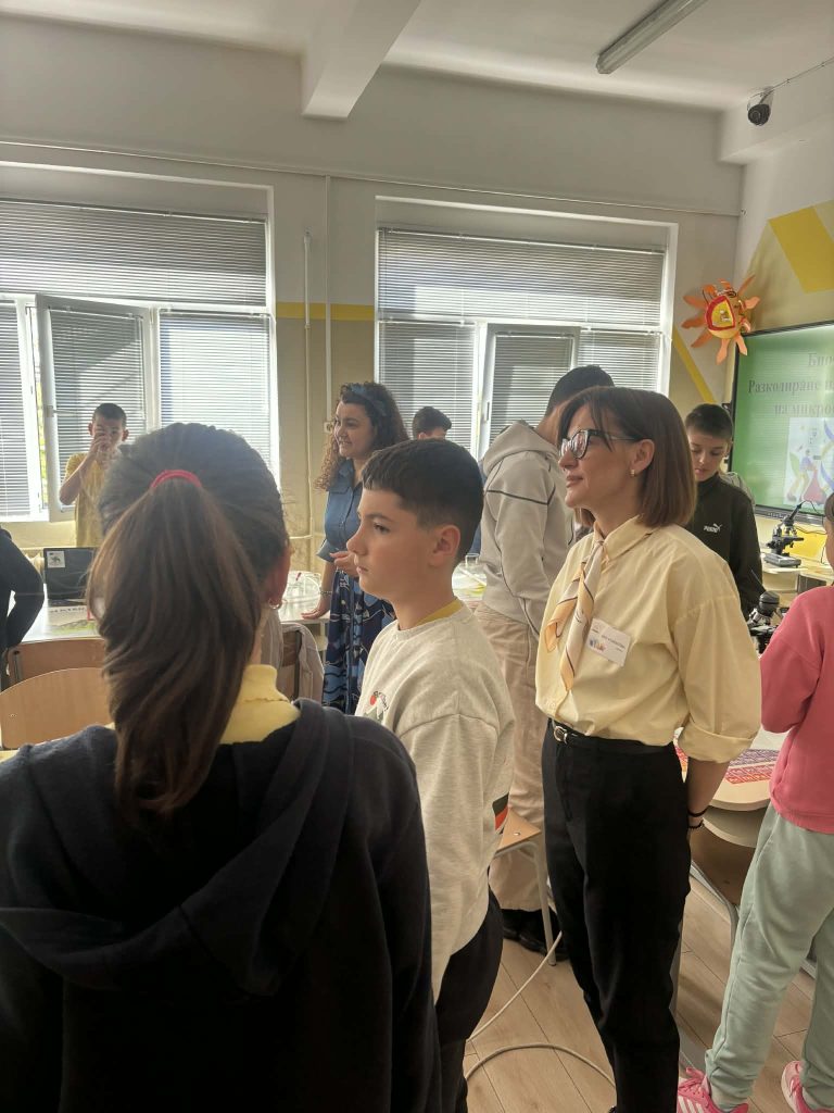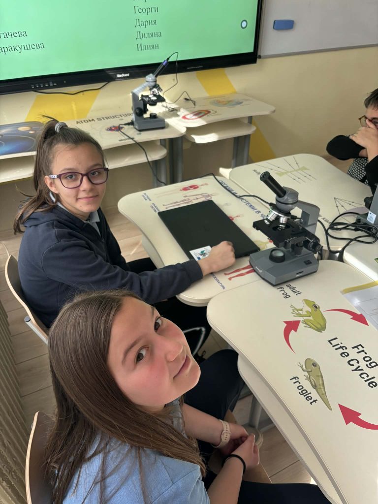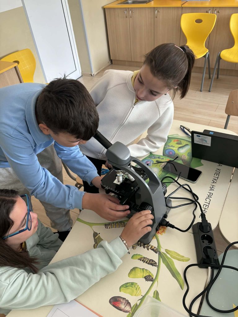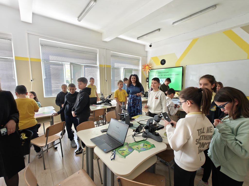 В лаботаторно занимание под името „Биохакери: Разкодиране на загадъчния свят на микроорганизмите“, проведено в STEM пространството по природни науки, петокласниците надникнаха в невидимия свят на клетките. Чрез работа с микроскопи те изследваха и разкодираха структури, невидими за човешкото око. Като истински млади изследователи, те създадоха своя дигитална лабораторна книга, в която събраха наблюденията и откритията си.