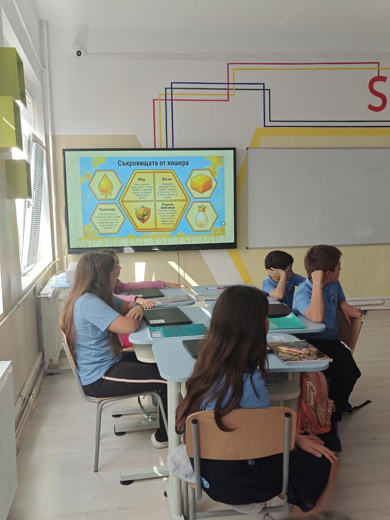 Интересен поглед върху науката представиха четвъртокласниците в кабинета по математика и информатика, където работиха по проект „Кодът на пчелите – STEM мисия“. Те влязоха в ролята на изследователи, инженери и откриватели, решаваха реални проблеми, анализираха данни чрез Google Sheets, създадоха интерактивна игра в Scratch, в която събираха „сладък медец“. Използвайки новите дигитални технологии с помощта на VR очила, учениците преживяха отблизо живота на пчелите и създадоха собствен 3D модел на пчелен кошер.