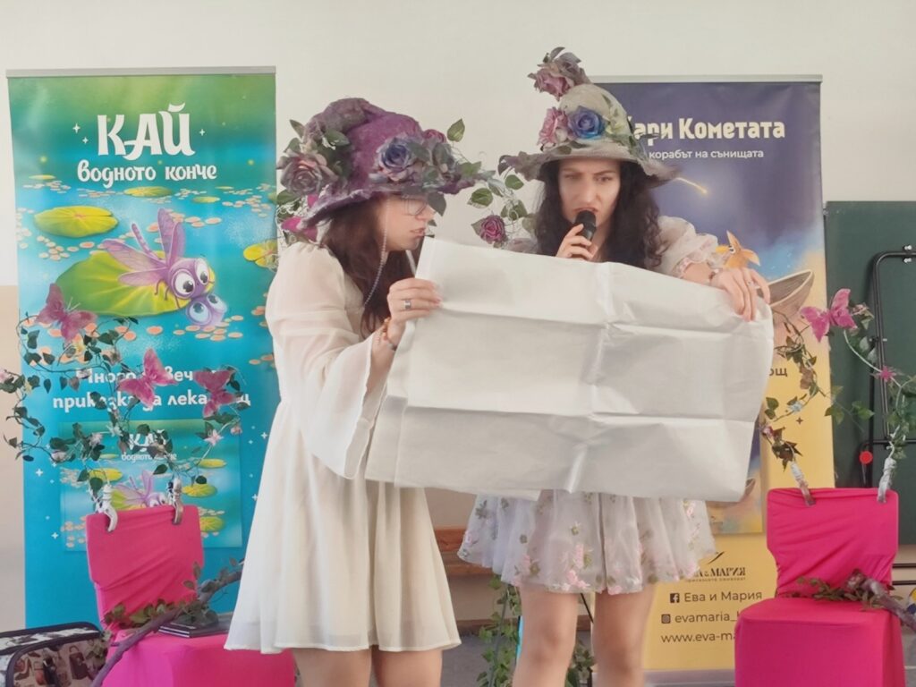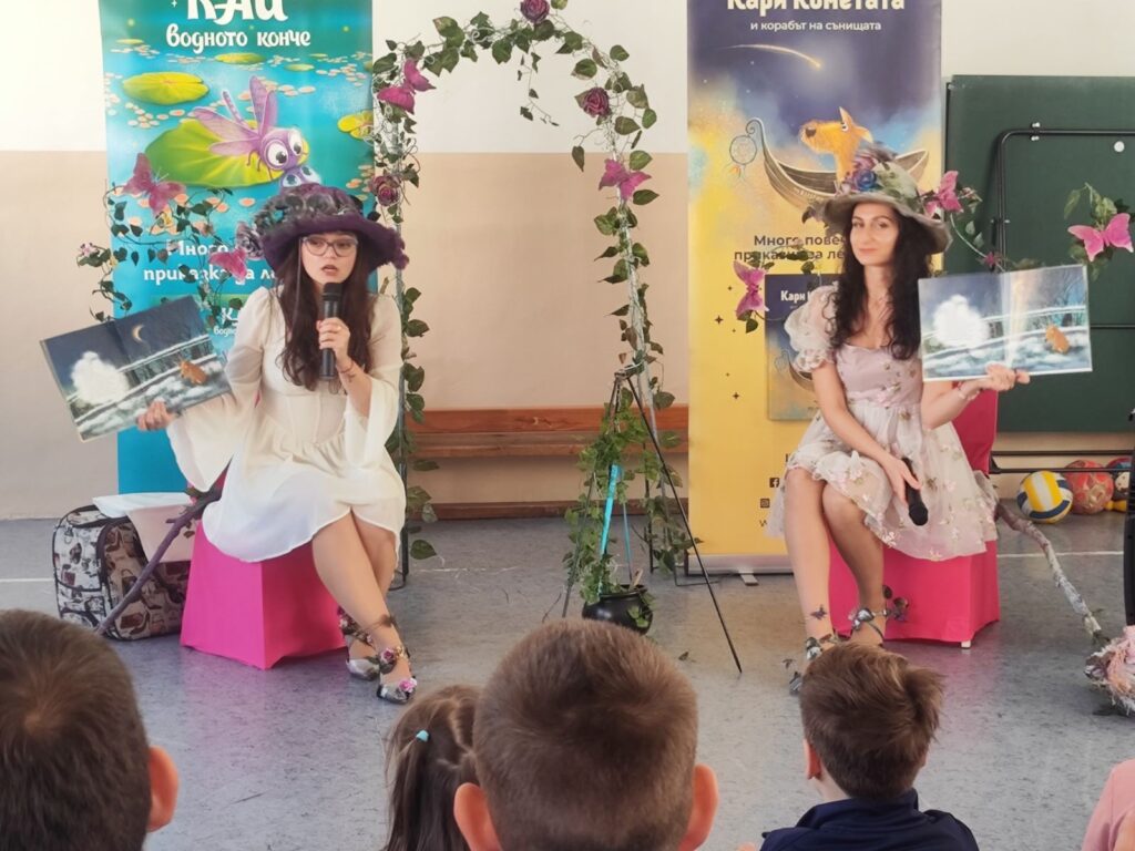 Гостуваха ни Ева и Мария – автор и художник на детски книги, които представиха своята история „Кари Кометата и корабът на сънищата“ по един необикновен, магичен и забавен начин. Облечени като приказни героини, с шапки, пръчици и много настроение, те плениха вниманието на децата още от първата минута.