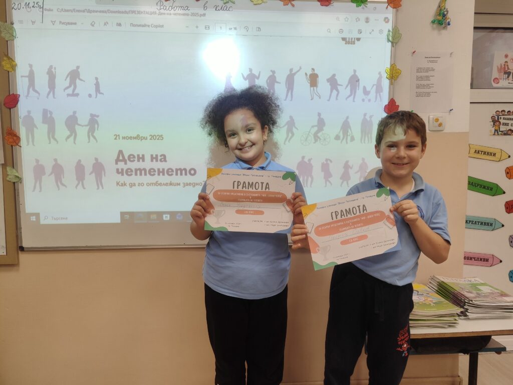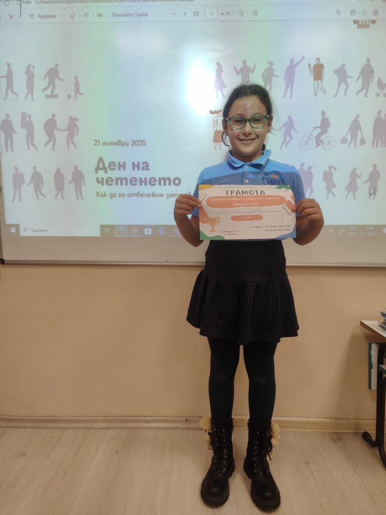 В рамките на Седмицата на четенето учениците от 2.в клас отбелязаха празника с вълнуващо състезание за „Най-добър четец“. Всички деца показаха усърдие, увереност и истинска любов към книгите!
