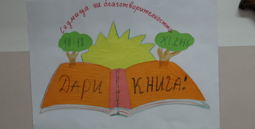 По повод “Седмица на благотворителността” в ОУ “Васил Петлешков” се проведе кампания за даряване на книги с цел попълване на фонда на училищната библиотека. В периода от 14.11. до 18.11.2016г. бяха събрани общо 81 книги от списъците със задължителна литература! Благодарим на всички, които се включиха