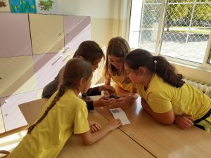 Учениците от III а клас сканираха QR кодове, а зад тях беше скрит текст с допълнителна информация и интересни факти свързани с уроците по Човекът и обществото.